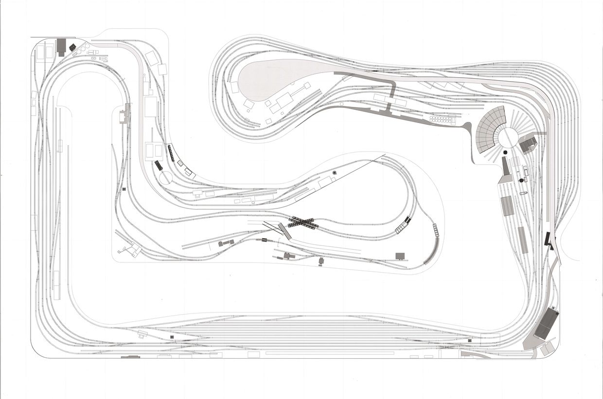 Departing from the Seattle Yard (upper right), trains go right hand running thru Ballard, past the Edmonds waterfront the yard at Everett followed by the passenger station. Arlington is next and then Burlington where the climb up the Cascades takes you to the second level.